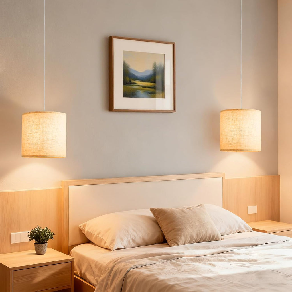 - Wide Application - This versatile pendant lights kitchen island fits seamlessly in kitchen islands, dining rooms, bedrooms, living rooms, studies and entryways. The minimalist linen shade of the hanging lamp complements modern, farmhouse, and boho interiors alike. The plug in pendant light can bring your space effortless elegance.