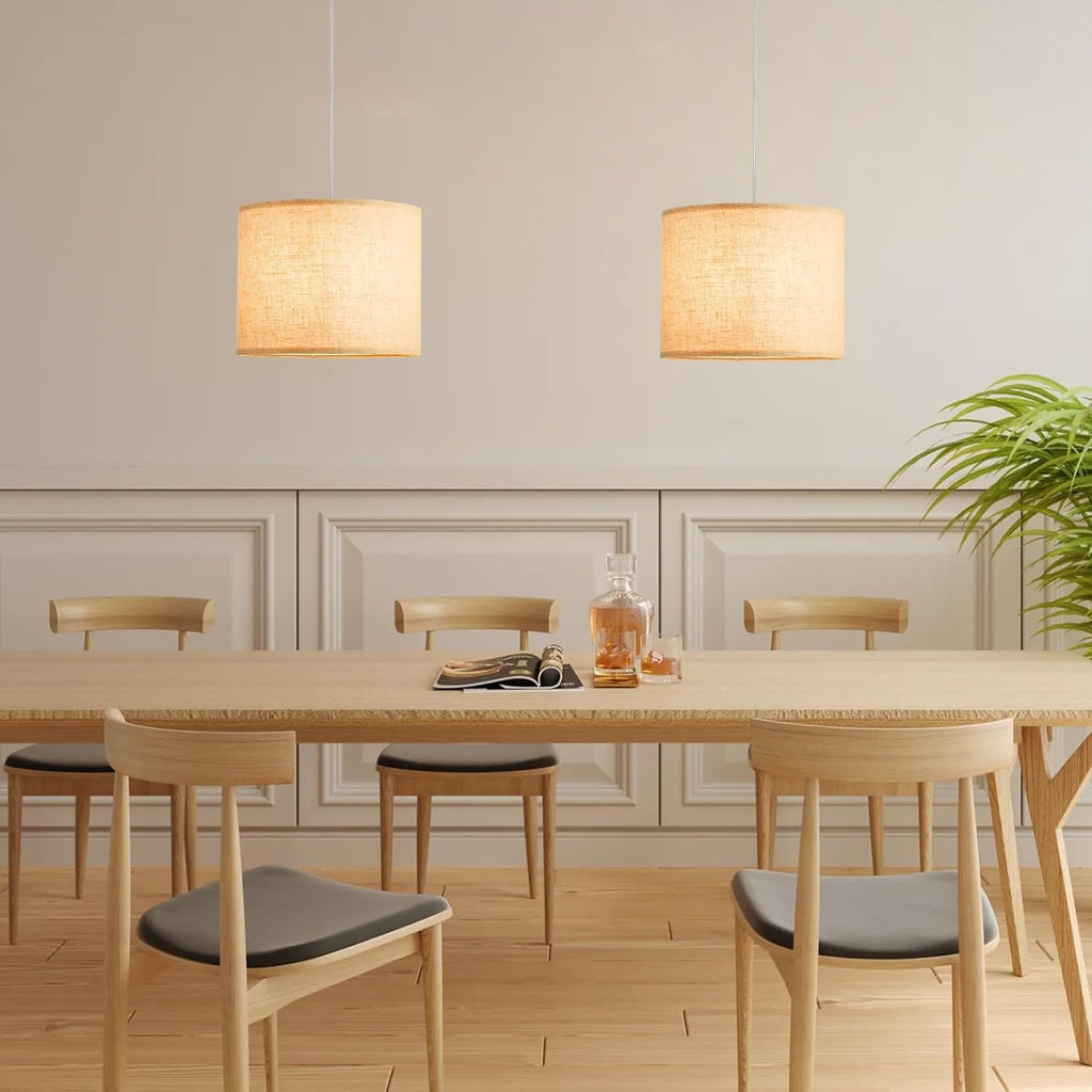 - 2 Pack Modern Hanging Lamp - This set of the pendant light includes two stylish fabric pendant lights kitchen island featuring natural linen shades. The fabric plug in pendant light can create a warm, cozy atmosphere for your rooms. The modern yet timeless design makes the hanging light suitable for all kinds of rooms and styles, adding balance and charm to your home decor.