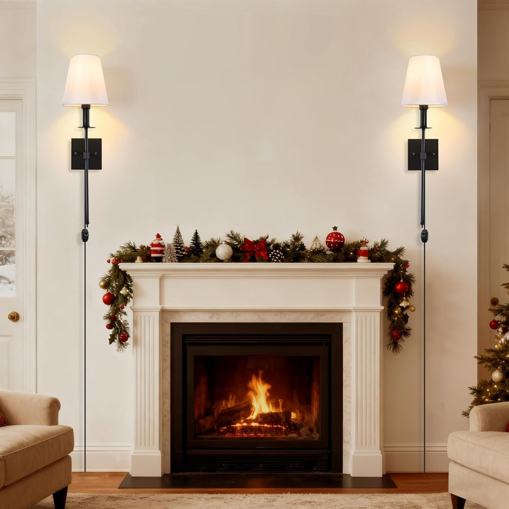 - Easy Installation & E12 Base - The plug in wall sconce includes a 60 inch plug-in cord for quick plug-and-play setup. You can easily install the wall light fixture following our instructions in minutes. The wall lamps for bedroom are E12 based and is compatible for any standard E12 bulb types (max 40W & bulbs not included). The plug in wall light is not only practical but also and simple to use.